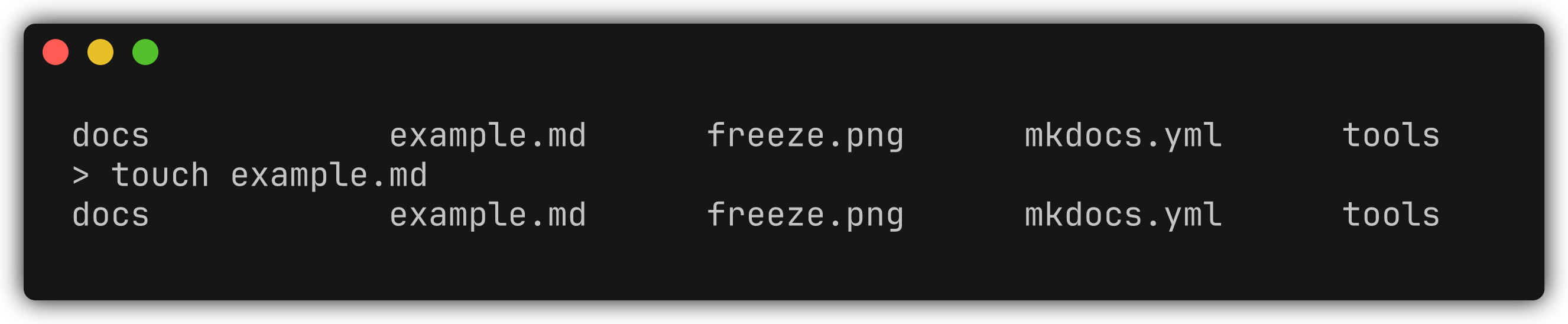 touch example.md # macOS/Linux type nul > example.md # Windows (cmd) New-Item example.md # Windows (PowerShell) -
