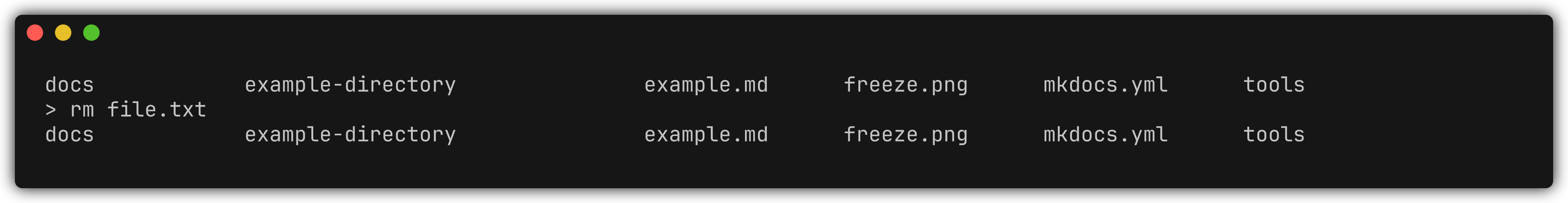 rm file.txt # macOS/Linux/Sometimes Windows del file.txt # Windows -