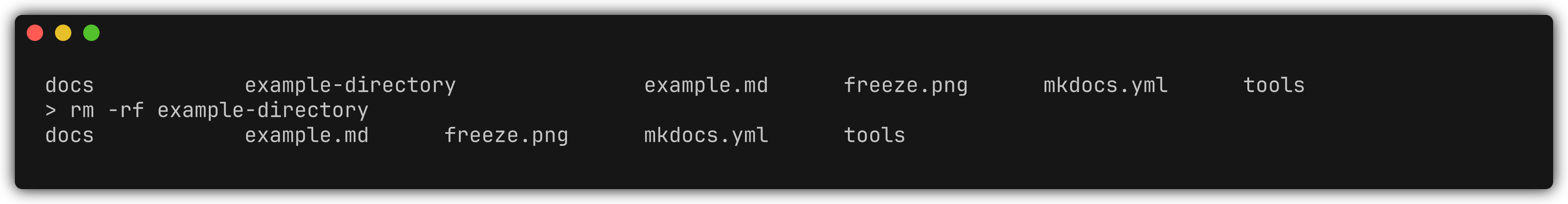 rm -rf folder/ # macOS/Linux rmdir /S folder # Windows